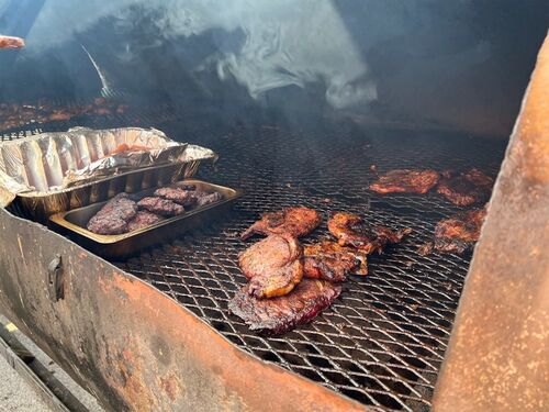 アメリカの市街地を車で走っていると、モクモクと煙が出しながら売っているBBQをよく見ます… NJ州に住んでいた時はほとんど見ることがなかったので、南部の名物なのでしょうか!? この日はいつも通過する所、ハンドルを切って寄ってしまいました… 黒人の陽…